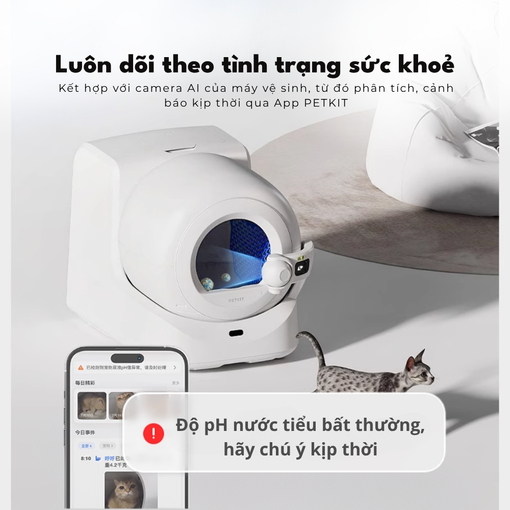 Tương thích với hộp vệ sinh AI PETKIT – cảnh báo bất thường ngay trên app.