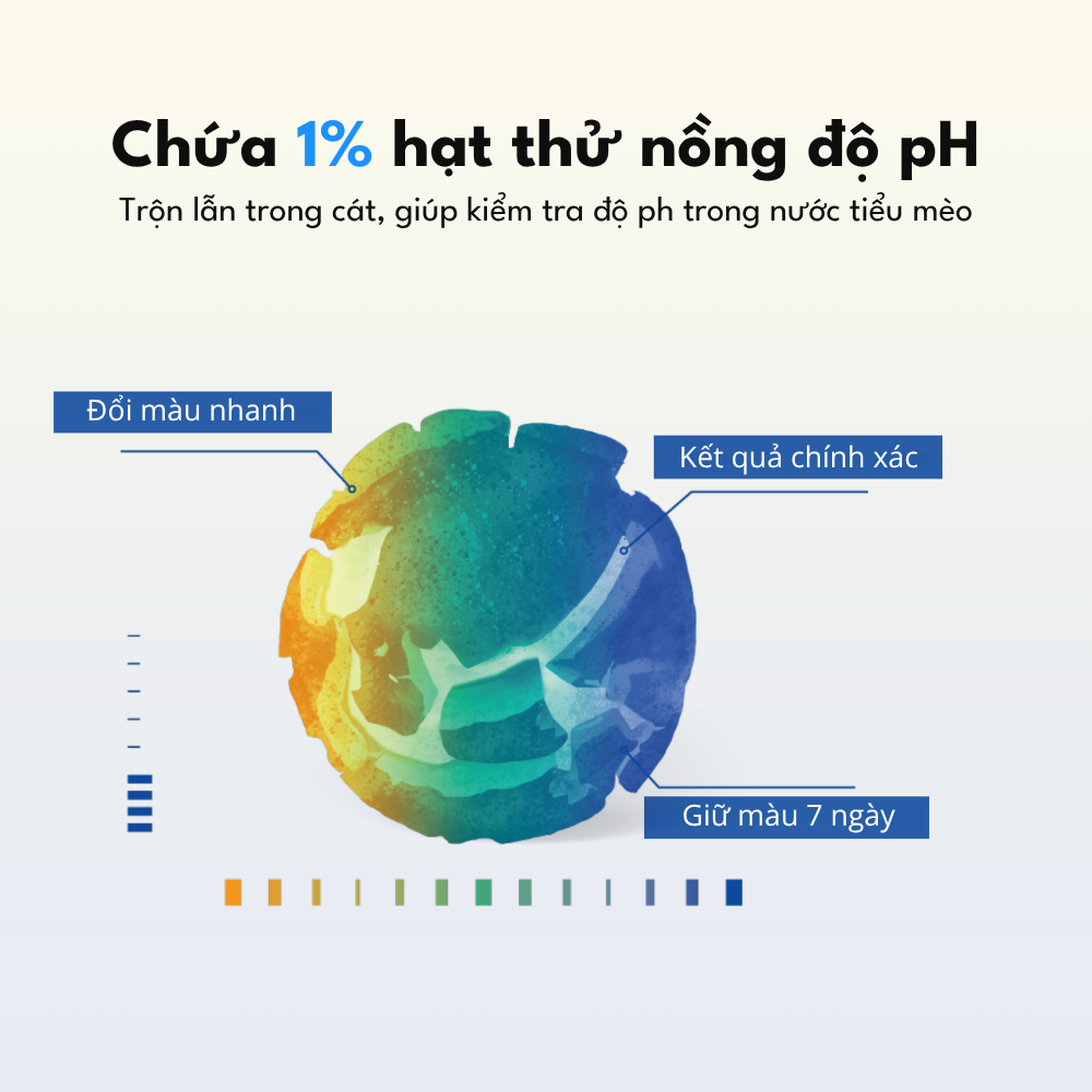 Cát mèo, cát vệ sinh cho mèo Petkit xét nghiệm nước tiểu là dòng cát mèo tích hợp tính năng thử pH, giúp bạn theo dõi độ pH nước tiểu của mèo ngay tại nhà – hỗ trợ phát hiện sớm các vấn đề về đường tiết niệu như viêm hoặc sỏi bàng quang. Khi mèo đi vệ sinh, cát đổi màu chỉ sau 3 giây, dễ dàng quan sát bằng mắt thường.