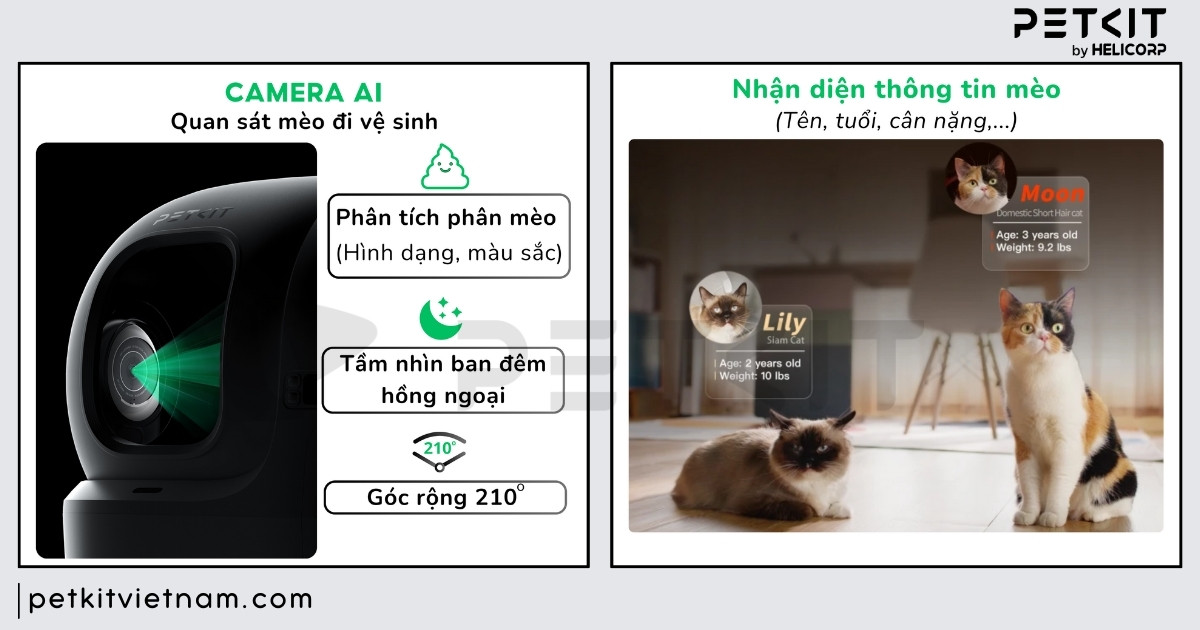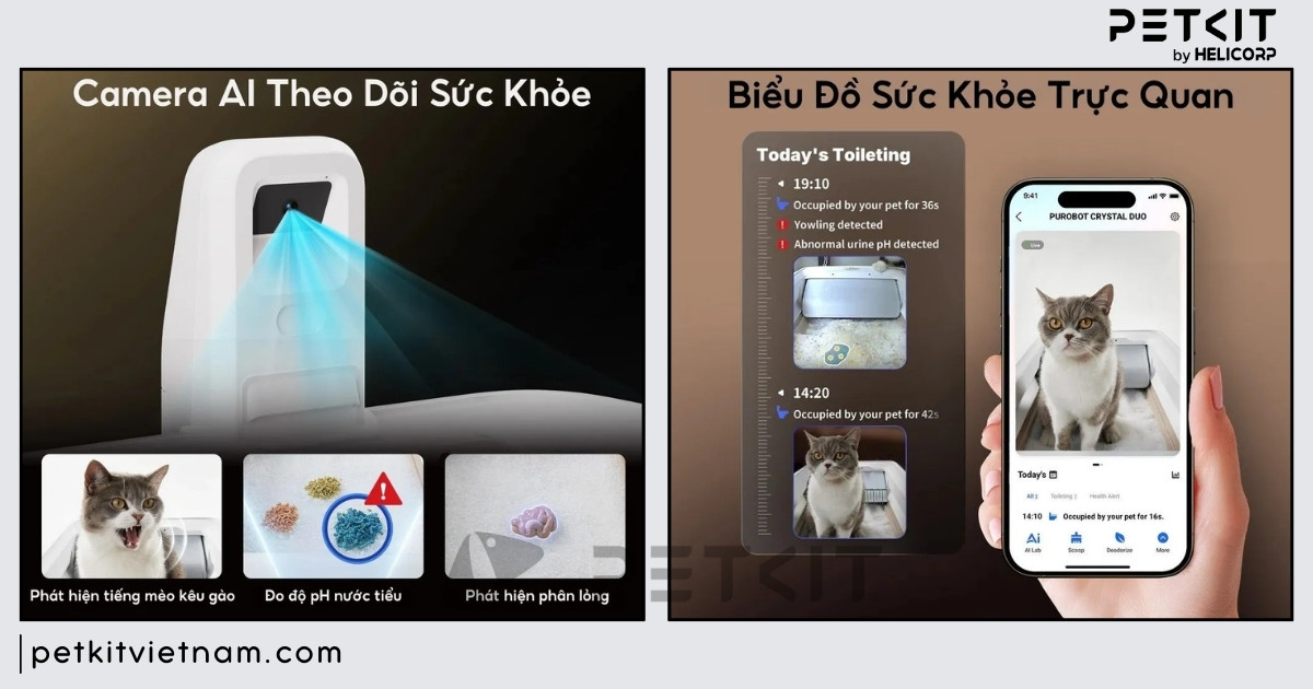 Máy dọn vệ sinh tự động cho mèo ngày càng phổ biến và phiên bản tích hợp Camera AI mang lại nhiều lợi ích vượt trội trong việc chăm sóc sức khỏe thú cưng. Hãy cùng Petkitvietnam.com tham khảo 3 mẫu máy dọn vệ sinh cho mèo tự động có Camera AI hiện đại từ thương hiệu PETKIT để tìm giải pháp phù hợp cho người bạn bốn chân của mình, giúp việc nuôi mèo trở nên nhẹ nhàng và hiện đại hơn.