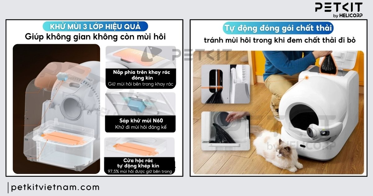 Tính năng khử mùi và tự hàn miệng túi rác của PETKIT Purobot Ultra
