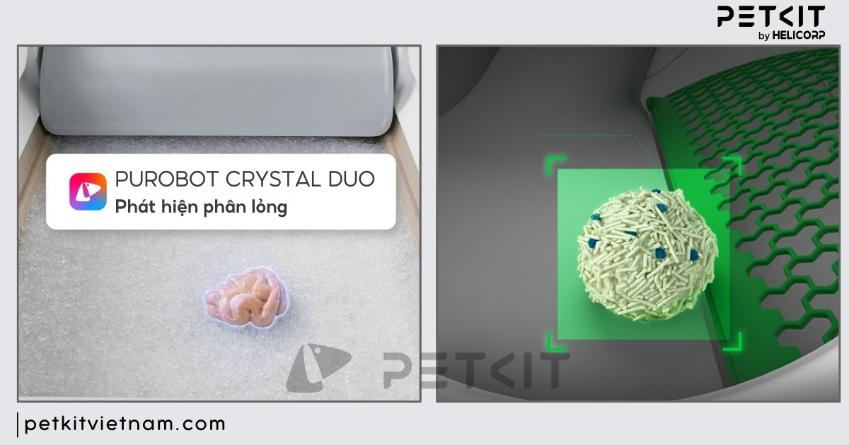 Vấn đề mùi hôi khó chịu được giải quyết hiệu quả nhờ hệ thống khử mùi kép kết hợp giữa sáp thơm và cát thủy tinh. Quan trọng hơn cả, Crystal Duo được trang bị Camera AI với góc quay rộng và có đèn trợ sáng cho phép giám sát ban đêm, giúp chủ nuôi có thể theo dõi trực tiếp hành động của mèo mọi lúc mọi nơi chỉ qua ứng dụng PETKIT trên điện thoại.