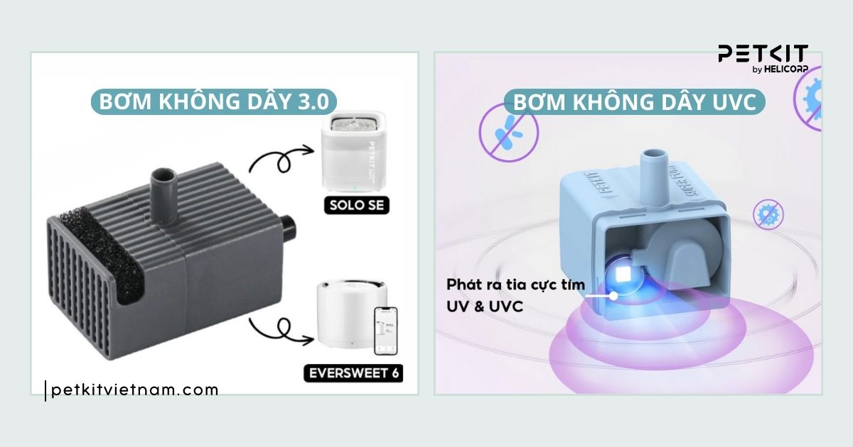 Bơm không dây thường và bơm không dây UVC của PETKIT