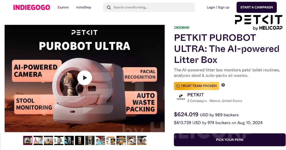 Máy dọn phân mèo PETKIT PUROBOT ULTRA được ra mắt vào tháng 6/2024 và tính đến thời điểm hiện tại 23/8/2024 thì đã có 988 người tiêu dùng đặt trước cho sản phẩm.